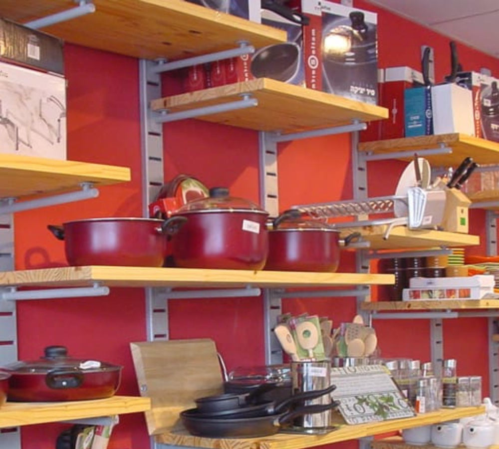 חנויות כלי בית למשל, צריכות לחשוב בדיוק הפוך – כאן המדפים מהווים את אלמנט תצוגת הסחורה ואילו מה שנתלה על ווים (לרוב באמצעות פלטות קיר מחורצות), הם אביזרים קטנים. הדרך היחידה לייצר מינון נכון שבין מידוף לתליה היא לייצר הדמיה ממוחשבת עם המומחים שלנו לפי גודל החנות כדי שתוכלו לקבל תמונת מצב מלאה לפני החלטה.