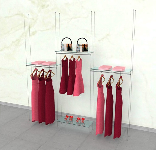 קיט כבלים ל 4 מדפי זכוכית + 3 מסילות תליה ברוחב 90 ס"מ – תקרה רצפה