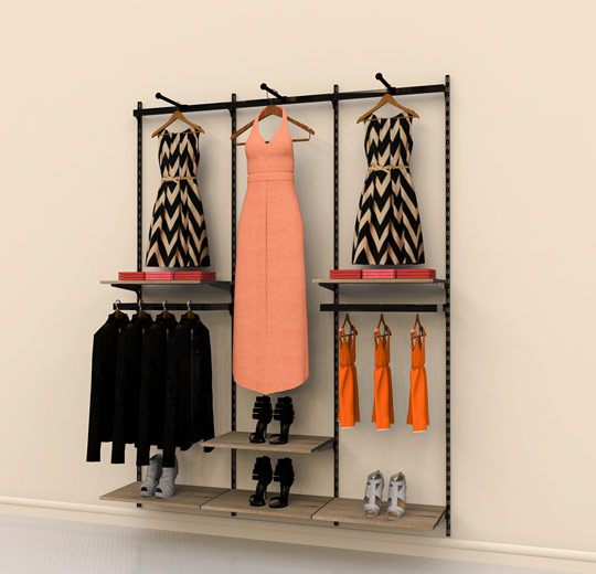 קיט סיסטמה צמוד קיר ל 6 מדפים עם 2 ברי תליה צידית + 3 ברי תליה פרונטלית, שחור