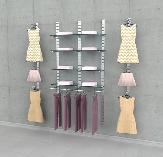 קיט פסי חריצים ל 4 מדפי זכוכית עם 6 תליות פרונטליות, מסילת תליה 120 ס"מ
