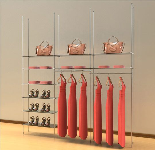 קיט צינור 35 ל 8 מדפים עם תליה פרונטלית ומסילות תליה 60/90 ס"מ – צמוד קיר