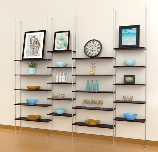 קיט צינור 12 ל 10 מדפי זכוכית או עץ ומסילות תלייה 60/90 ס"מ , עם מחברי שילוט – חיבור תקרה רצפה