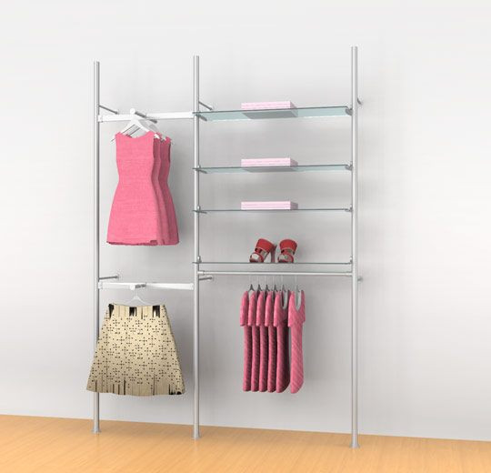 מערכת משולבת מדפים, תלייה רגילה ותלייה פרונטלית להלבשה